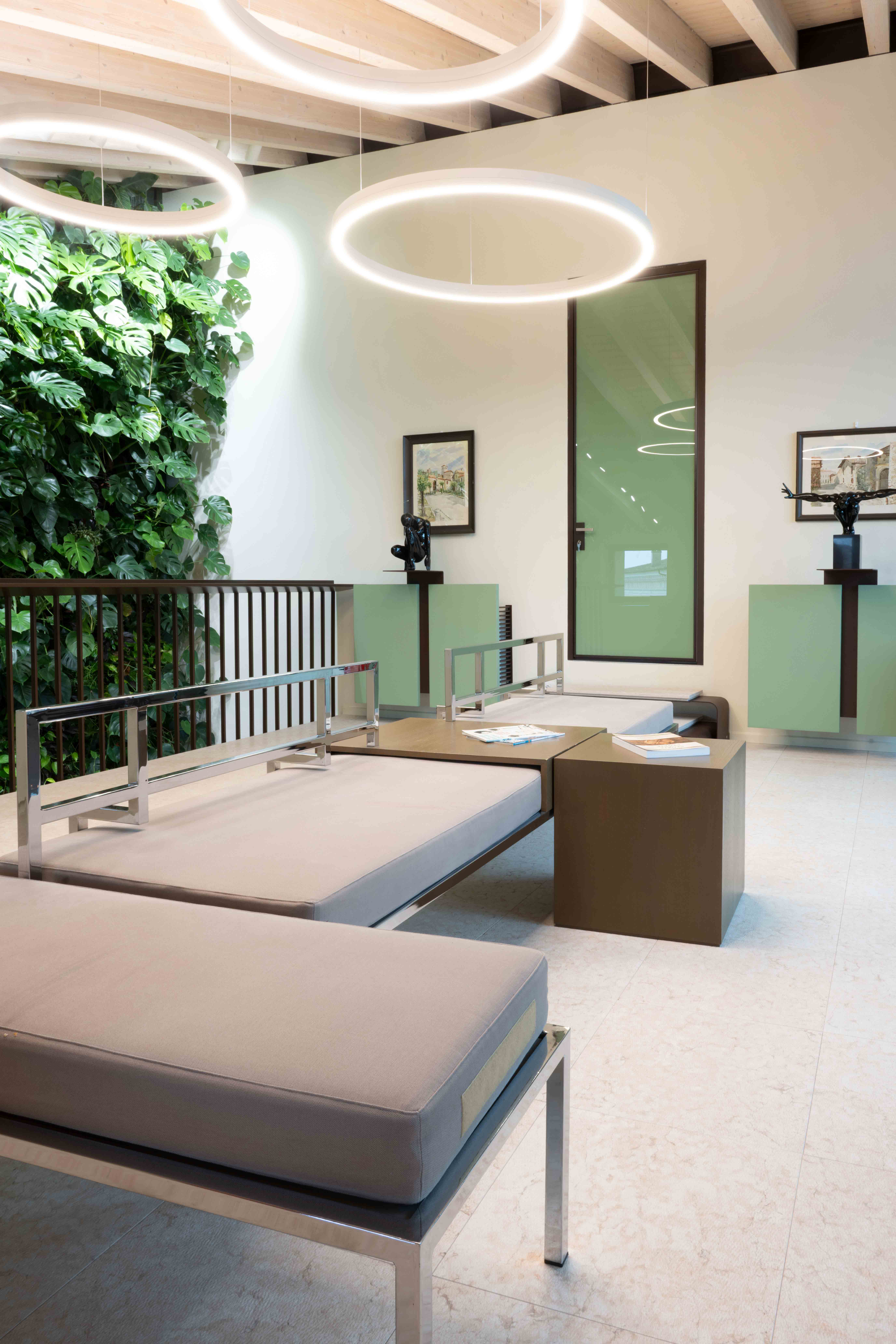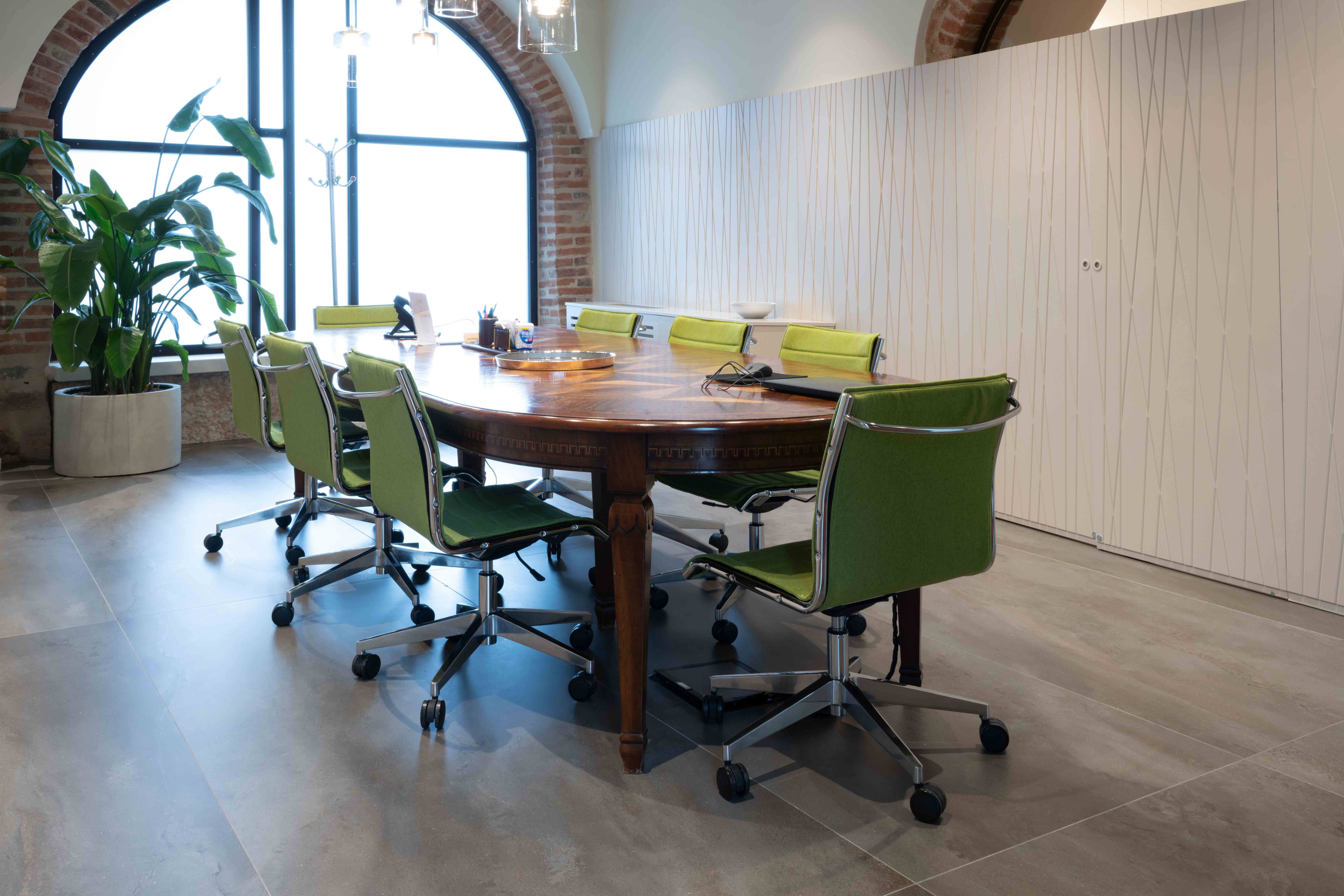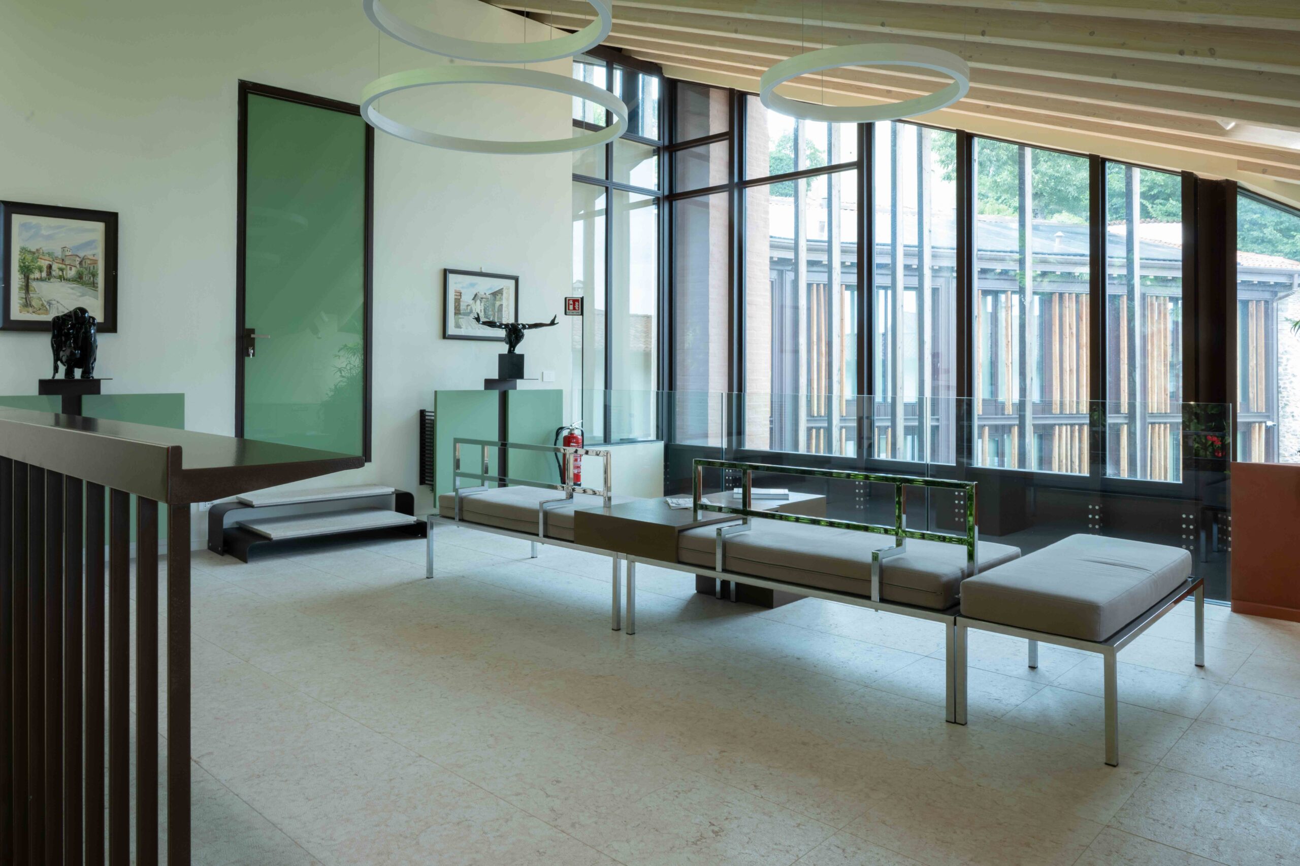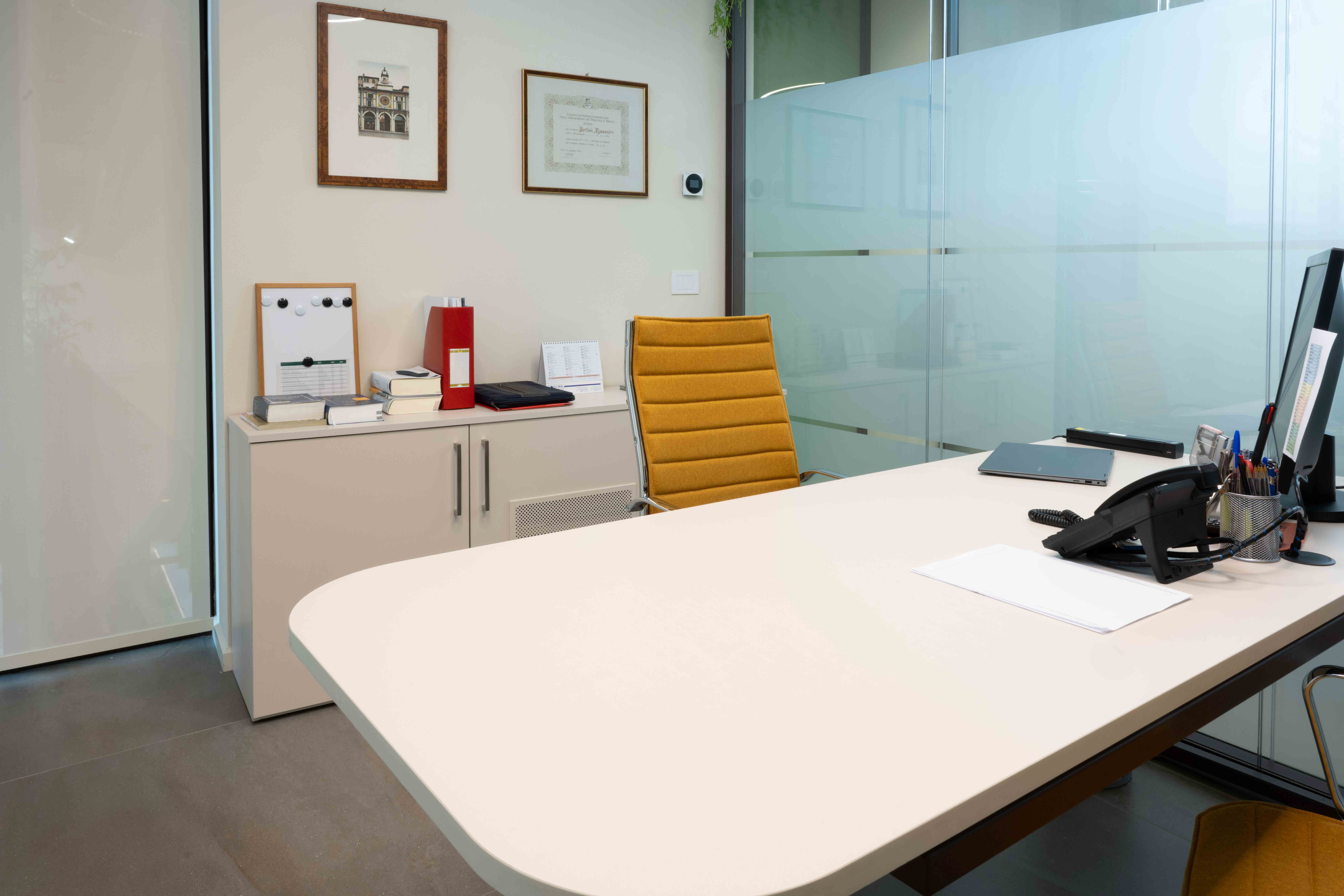 Un cascinale ristrutturato diventa sede di uffici dal carattere contemporaneo, dove luce e trasparenze dialogano con la struttura originaria. Le pareti vetrate, adattate ad misure inrregolari e con funzione insonorizzante, creano spazi riservati ma luminosi. Colori, materiali e arredi, scelti assieme all’architetto e al cliente, raccontano un equilibrio armonioso tra tradizione e modernità. Le armadiature su misura completano l’ambiente, fondendosi con l’architettura e valorizzandone l’indentità.