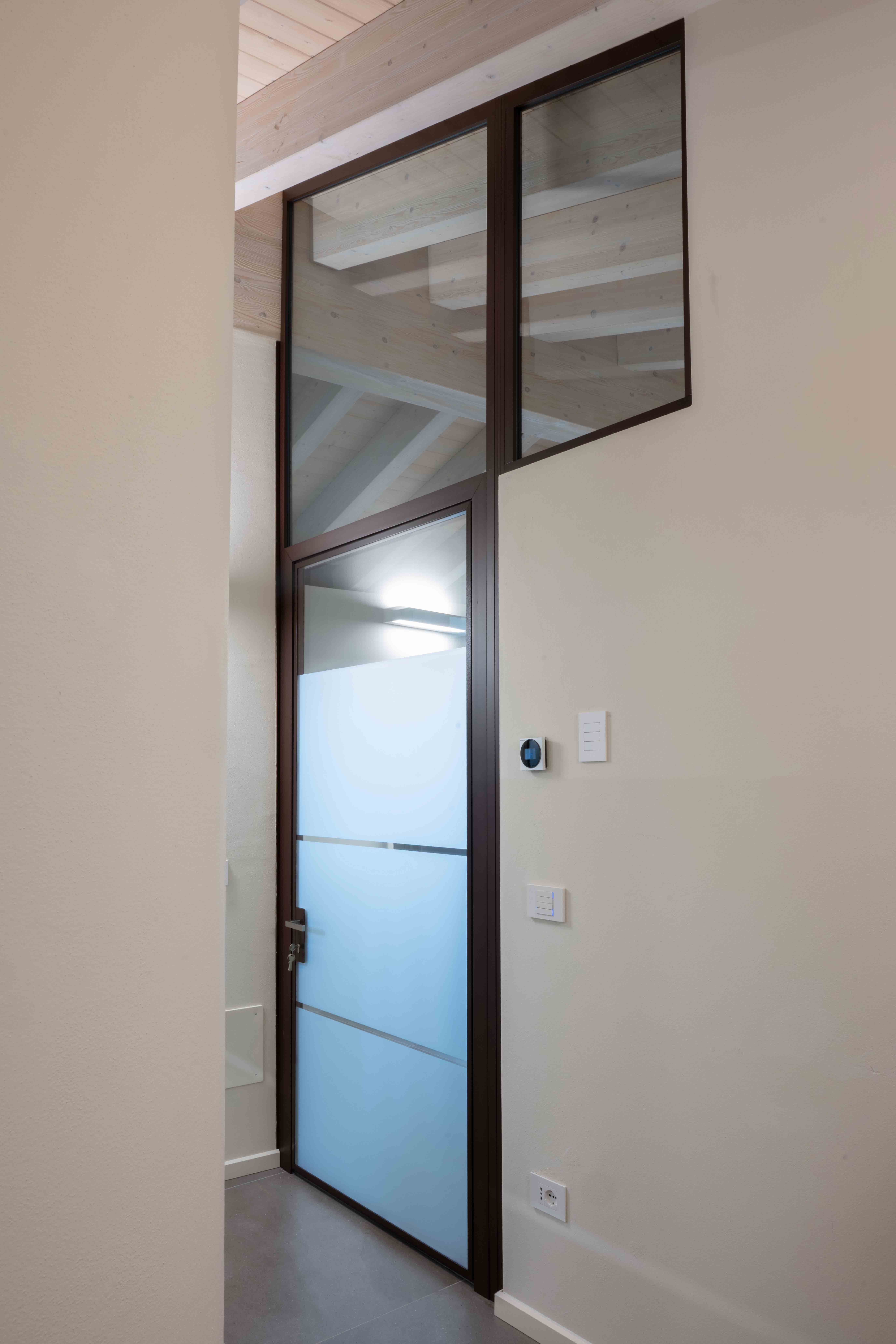 Adattare le pareti vetrate alle dimensioni irregolari del cascinale ha richiesto rilievi accurati e soluzioni completamente su misura.